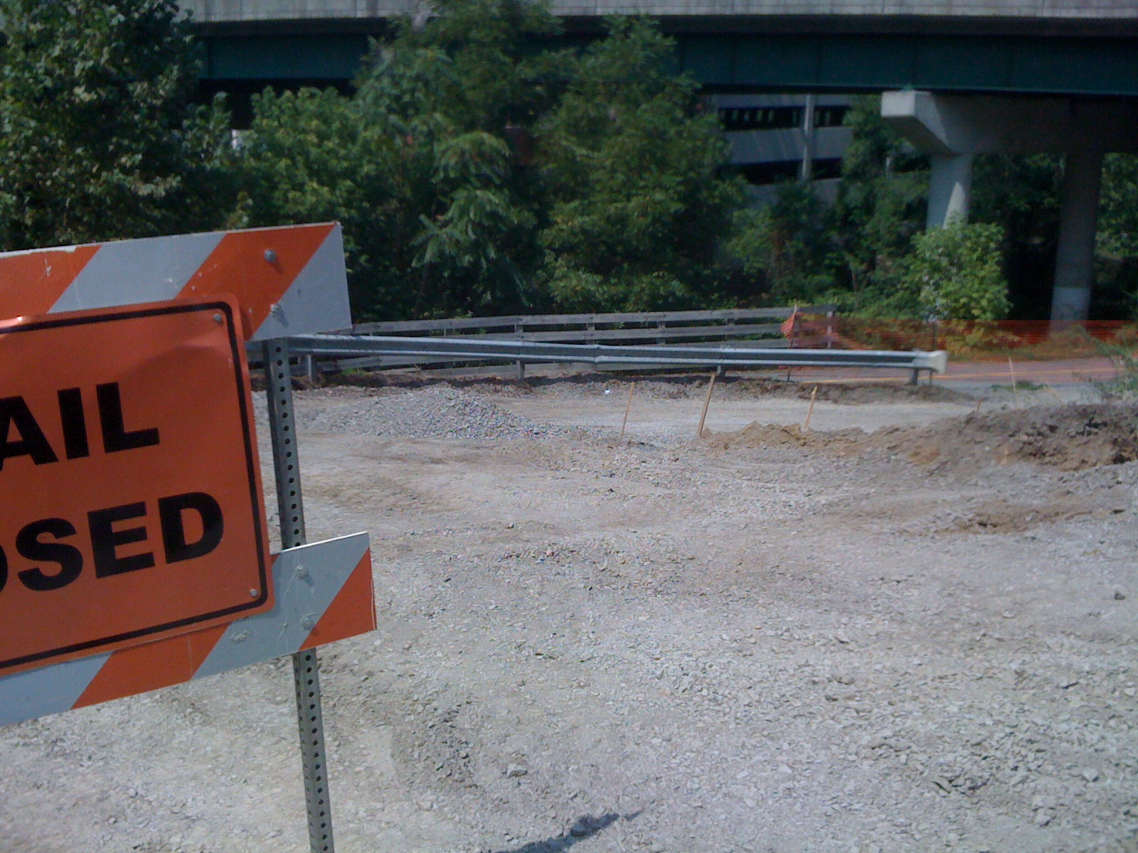 And that section of trail that is "closed" can be easily enough circumnavigated by just going up Deckers to just before the High St. bridge and then going up that street to the left. It is a rather "sketchy" section, but quite doable. I was thinking that they were redoing that section just to make the corner wider. As it is now when they take large vehicles down it they go off into the soft stuff pretty quick.