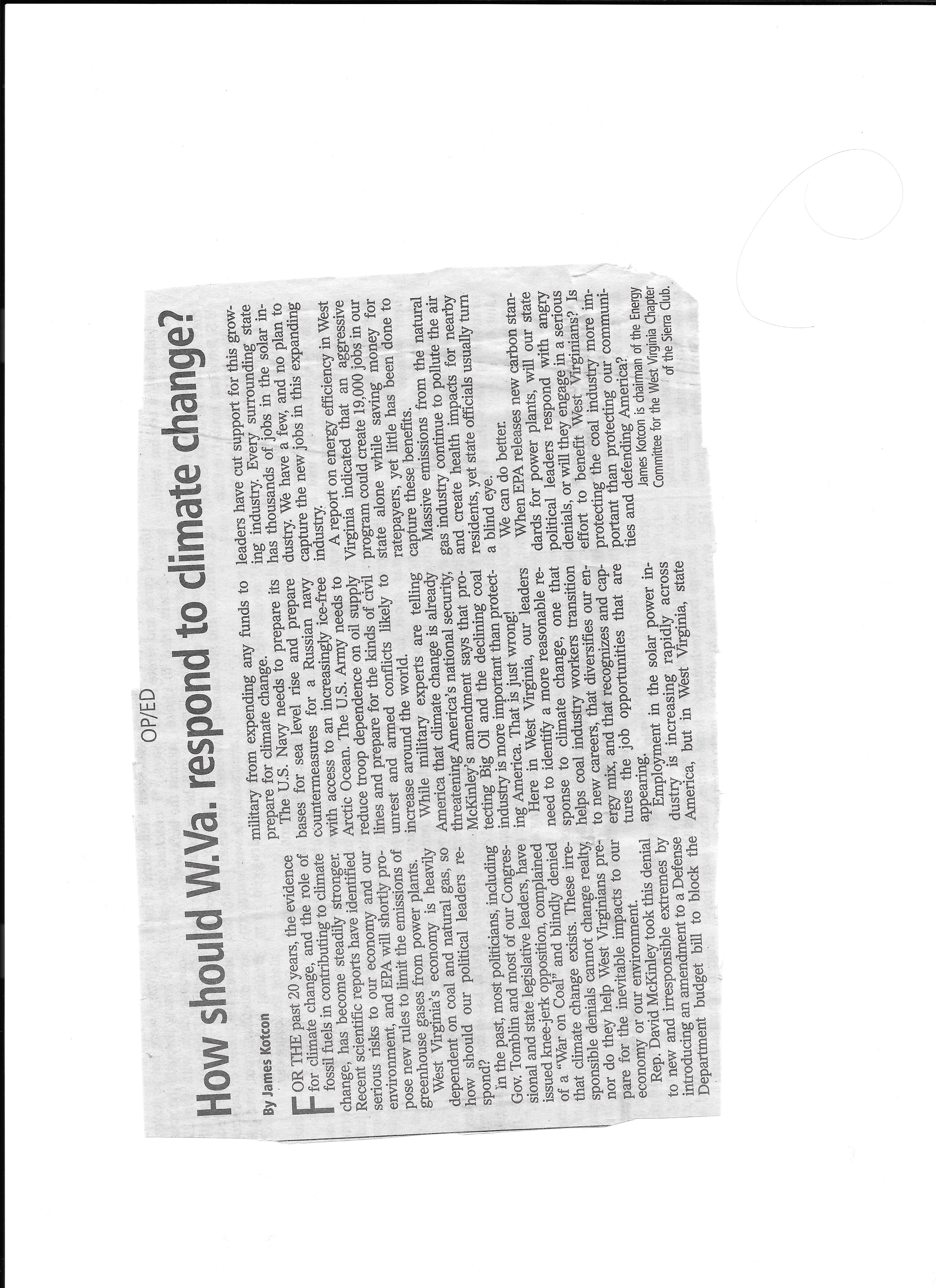 For those who did not see the paper version, the Op/Ed apparently ran Monday in the print version of the Charleston Gazette. It was not posted to the on-line edition, so Thanks to Bill Price for finding it and forwarding this.