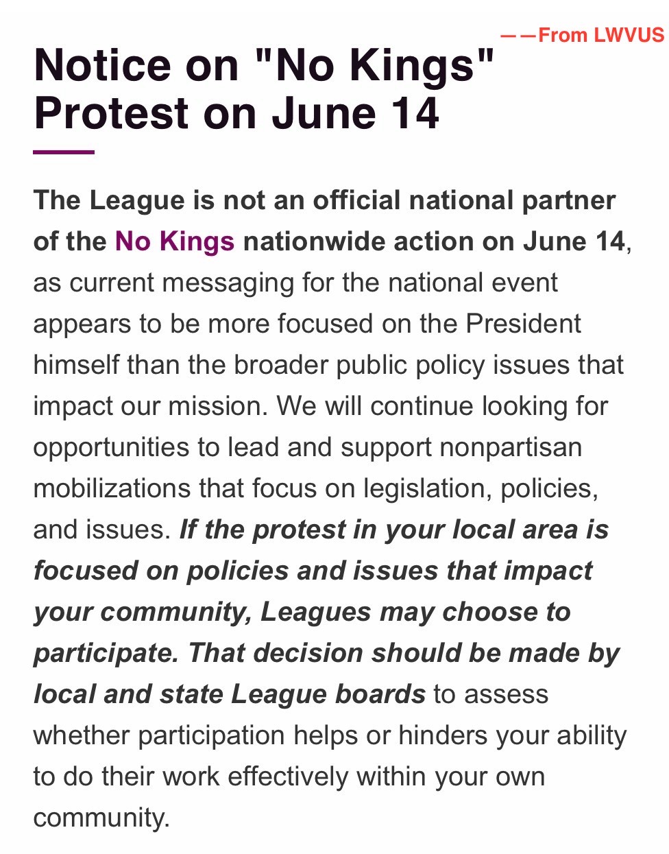 Notice from LWVUS - ICYMI
