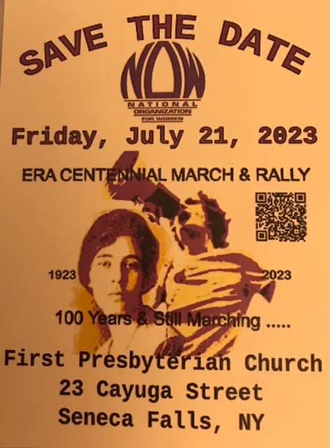Thank you Adrianne for attending the National NOW conference and alerting the rest of this to this historic event. Here are more details: https://msmagazine.com/2023/07/03/seneca-falls-era-equal-rights-amendment/, along with this summary: https://lp.constantcontactpages.com/cu/UA3KPVj/ERASenecaFalls. A big purpose of the convention is to encourage younger women, they get in free. I am hoping to go too.