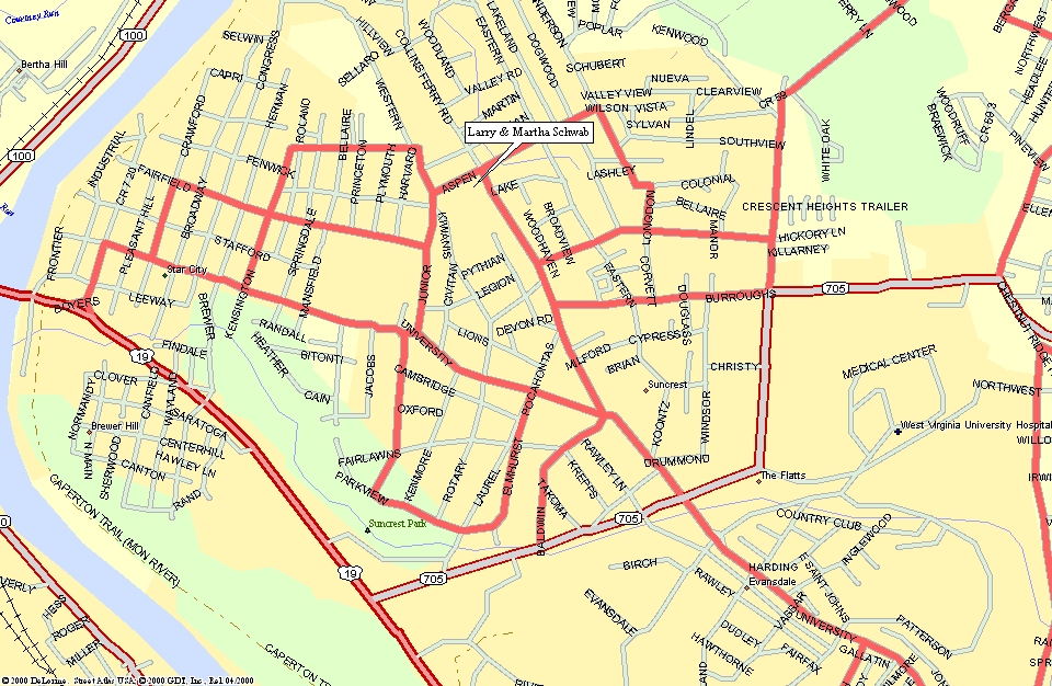 To get to Collins Ferry Rd, take University Ave toward Star City. University splits into University and Collins Ferry just past the Eckard drug store (Morgantown side) or Bi-Lo grocery store (coming from Star City)
